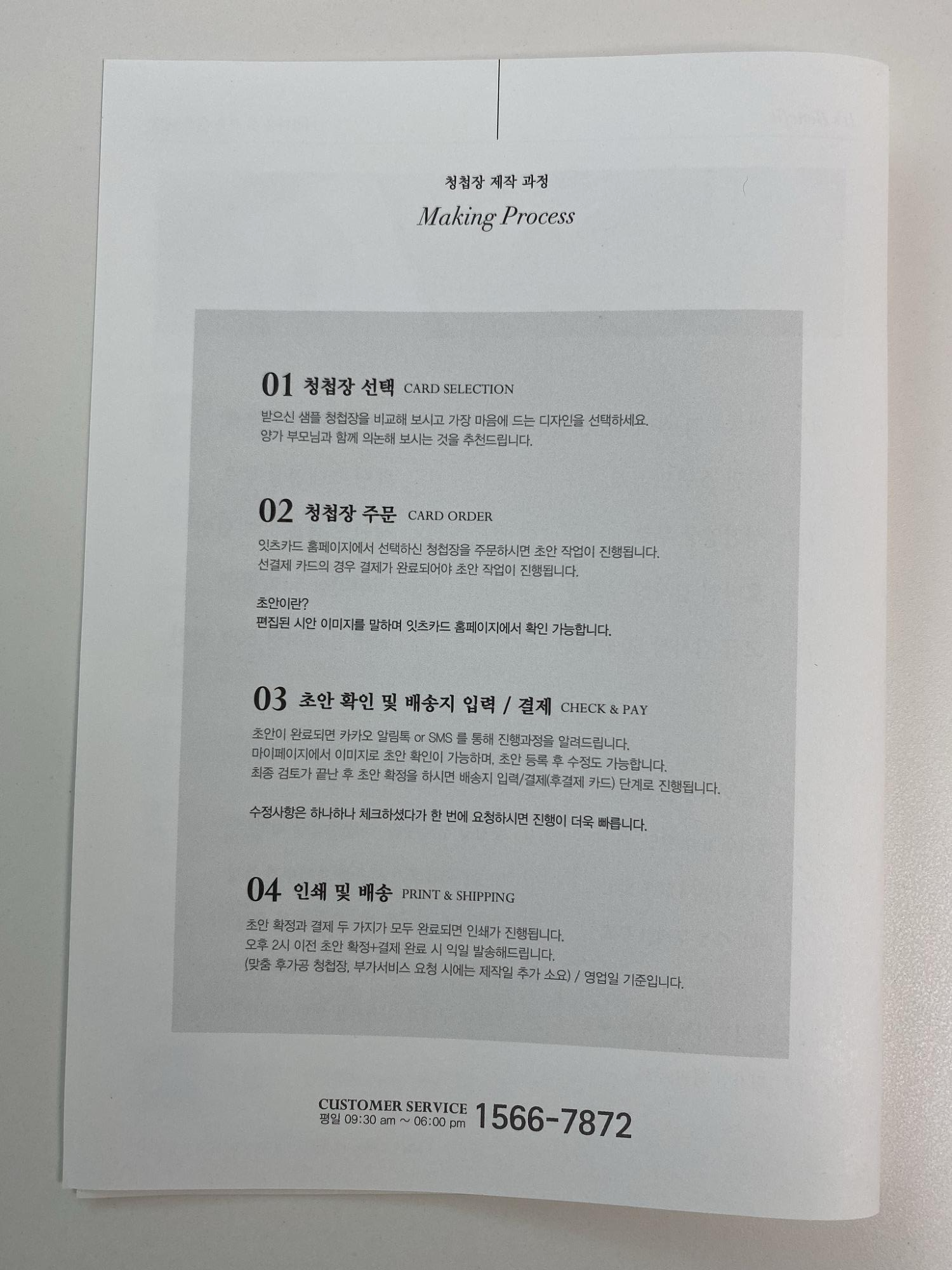 청첩장은 이런 과정으로 제작이 진행되구요~