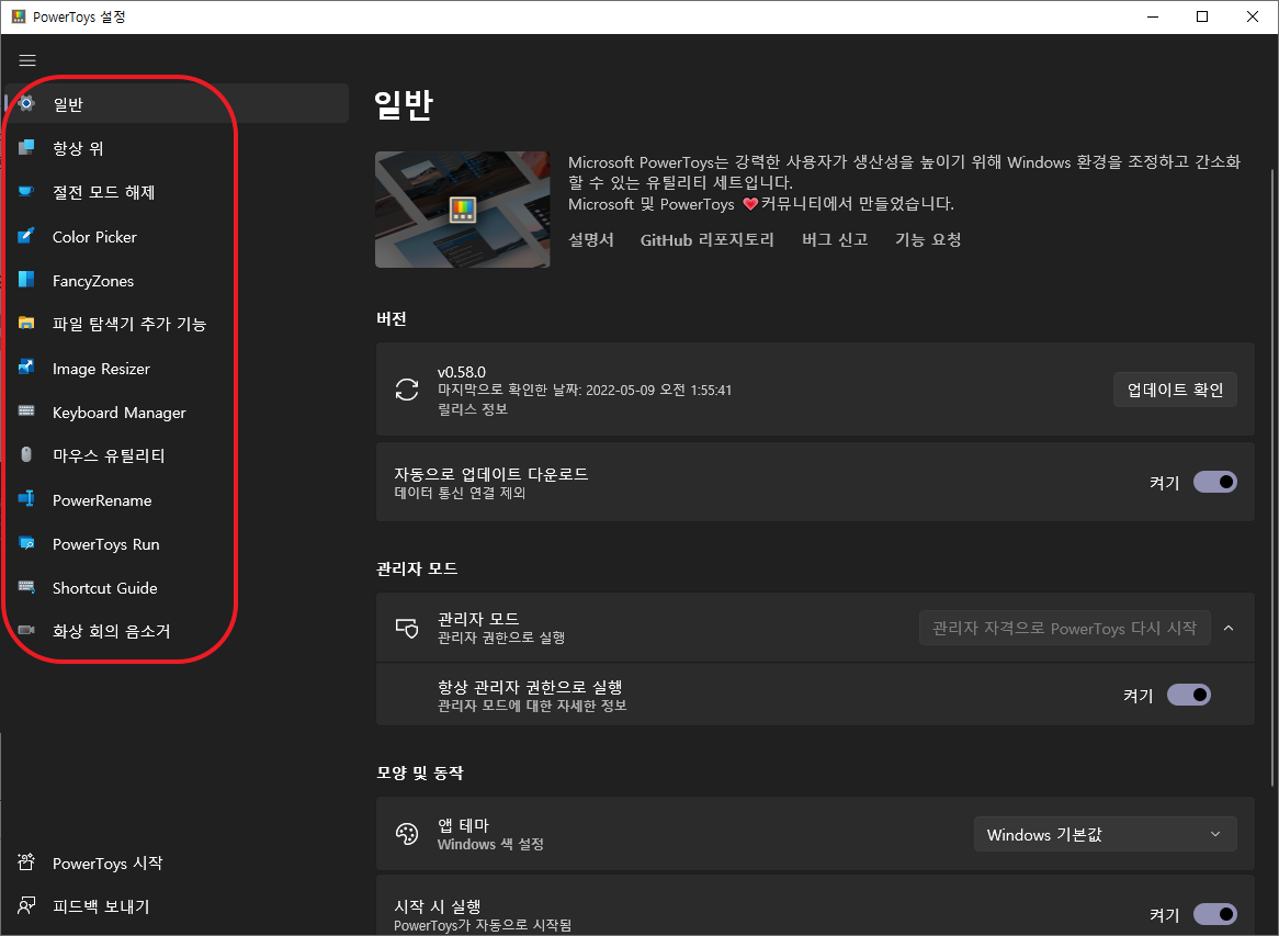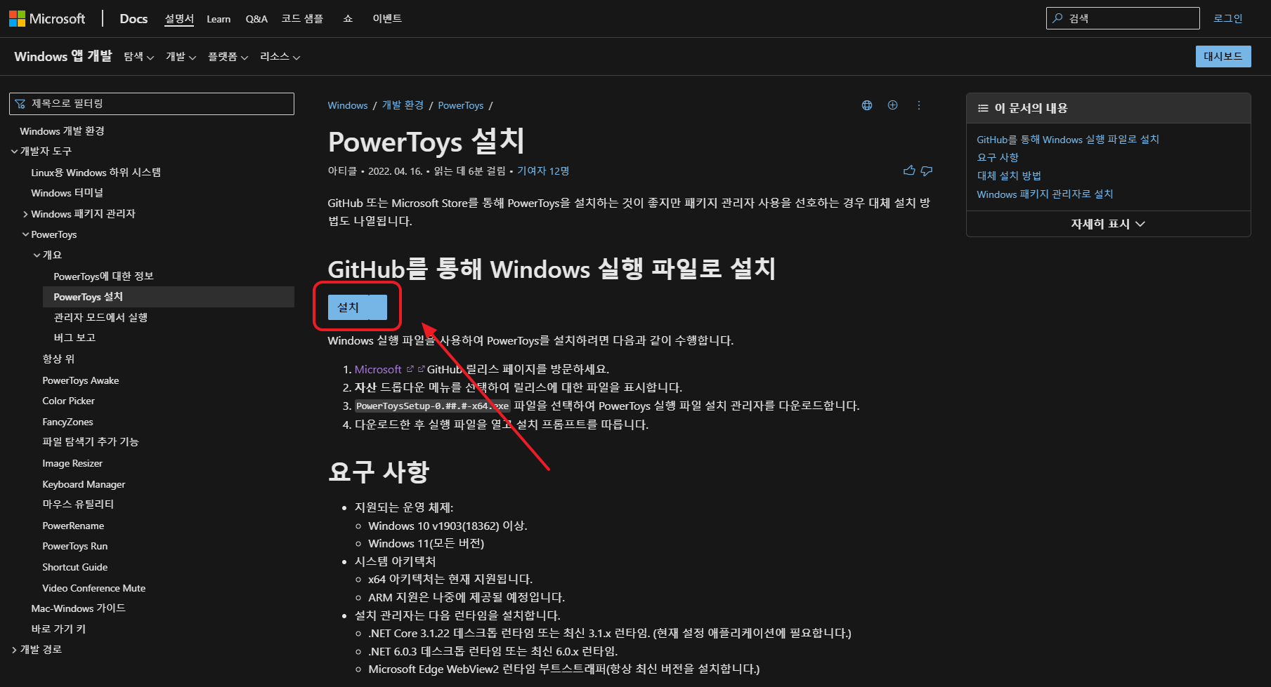 실행 파일 또는 패키지 관리자(WinGet, Chocolatey, Scoop)를 사용하여 Windows를 사용자 지정하기 위한 유틸리티 세트인 PowerToys를 설치합니다.