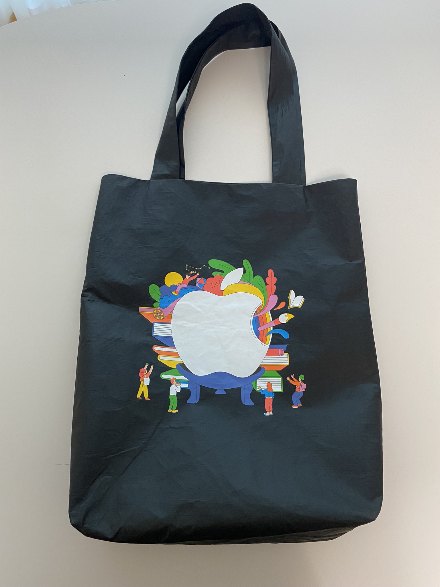 이번 명동점 오픈의 기념 굿즈는 기념 스티커와 에코백입니다. 인당 1개씩 받을 수 있어, 와이프와 함께 총 2개 받아왔습니다. 따로 판매하지 않는 제품이라고 하니 의미가 있는 것 같습니다. 에코백 소재가 정말 독특해요, 뭔가 비닐같으면서 내구성은 좋아보이는?? 애플은 굿즈도 정말 신경써서 만드는 것 같아요.😊